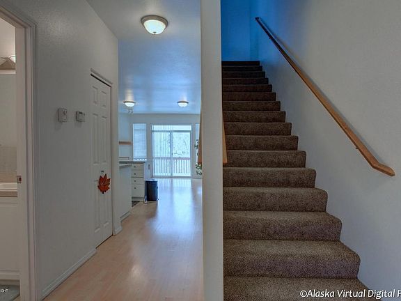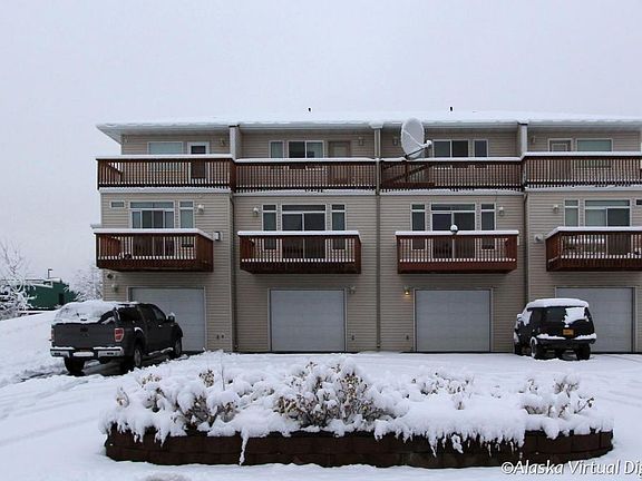 Fantastically located in the middle of everything Wasilla. This 1419 square footcondo offers quite the location and space. Enjoy the fabulous view from the Master deck as well as the main deck. With an oversized garage it makes condo life a little easier because of the space. All the bedrooms are up.