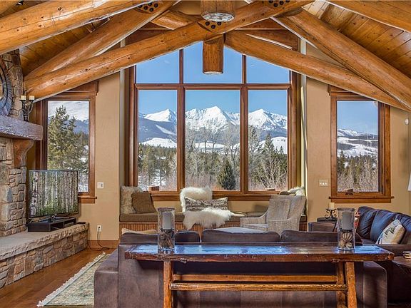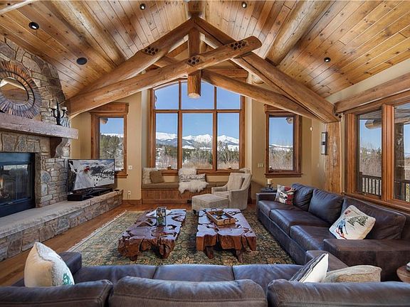 This magnificent residence rests on the coveted Gold Run ridgeline that enjoys views of the Tenmile Range, Breckenridge Golf Course and a rare accompaniment of a soothing and soulful babbling creek. Constructed by George Gruber, the timeless design of this home will resonate for generations. The log trusses complement the open floorplan that takes full advantage of Peaks 1, 2 & 3. The amplified outdoor living space includes an upper viewing deck as well as a cozy patio with fire pit and hot tub.