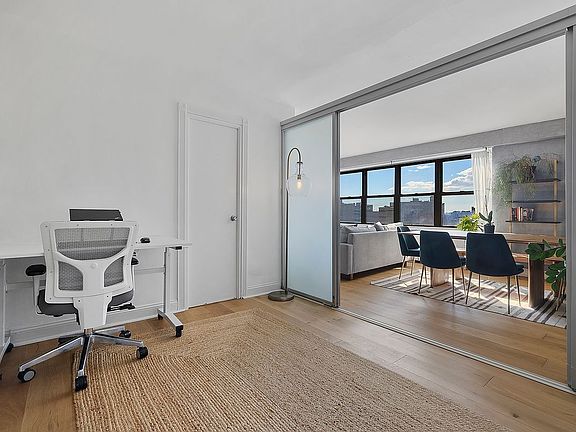 A rare opportunity to own a truly expansive residence at 1020 Grand Concourse. This one-bedroom plus home office with two full bathrooms is flooded with southern light and framed by a wall of windows offering a peek of the famed Manhattan skyline.