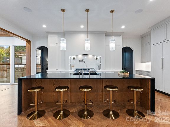 Welcome to Keen Building Company’s 5,036 square-foot luxury new build in the sought after Sedgefield neighborhood. The front elevation of this home features full masonry construction, an oversized modern steel-frame pivot door, a custom wood garage door, a landscaped courtyard driveway and a dramatic glass tower of windows showcasing the floating staircase and oversized chandelier. The outdoor living area includes a spacious covered porch with a fireplace and an uncovered porch with a built-in grilling station. Inside, the impressive two-story foyer with its floating staircase creates a grand entrance filled with natural light and an open, airy feel. This home offers five bedrooms including two primary suites (one on the main level and one upstairs) and five and a half bathrooms. The kitchen features a high end paneled appliance package, a large island, and a walk through scullery with an expansive secondary appliance setup, functioning as a secondary kitchen. Additional highlights include a large flex/game room with a TV entertainment area, dining space, and wet bar. The home also includes an advanced tech package with a built-in Sonos premium speaker system, Eero Pro access points, and a Ubiquiti G5 camera system. Habersham Drive is a quiet, prestigious street and the only one in Sedgefield with a tree-lined median. This is your opportunity to live on one of the neighborhood’s most desirable streets in a thoughtfully designed luxury home featuring exceptional craftsmanship and elevated finishes throughout.
