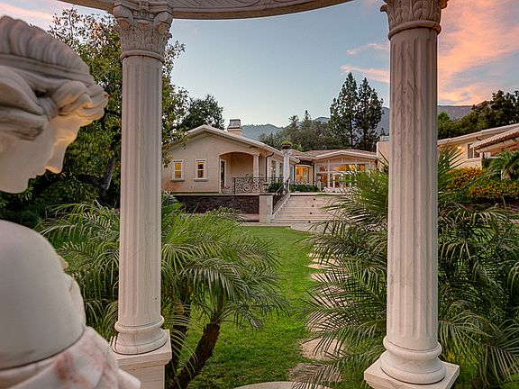 European-style elegance and fine artisan craftsmanship! Located in the prestigious Upper Rancho neighborhood, this majestic home proudly features a perfect balance of function and luxury, starting with its cobblestone circular driveway, lush front landscaping, and Italian-made life-size water fountain sculpture. Completely rebuilt in 2008, this home showcases the finest fittings including a grand marble foyer, oversized crystal chandeliers, sculpted crown molding and cornices, coffered ceilings, teak wood floors, and artistic touches all around. Features three spacious bedroom suites each with their own luxurious baths and walk-in closets, two well-appointed powder rooms, gourmet kitchen, with oversized granite island, walk-in pantry, and professional appliances including 6-burner Bertazzoni gas range. Kitchen opens to the formal dining room, as well as the grand room, including full-sized wet bar, sun-soaked breakfast nook, and family room. Most every room in the house overlooks the park-like backyard, which includes lush lawns, mature trees, a solid marble pillar gazebo, Italian marble water fountain with statue, and the tour de force: a beautiful cabana with full kitchen including built-in BBQ, gas burners, sink, refrigerator, and wine cooler and retractable awning/sun shades. Make 1020 Hampton Road part or Your Perfect Life! House: 4896 Sq. Ft. Enclosed Cabana 682 Sq. Ft. on 30,890 Sq. Ft. lot (assessor) Custom-crafted home, built 2008 (assessor) 3 Bedrooms: all en suites, including the Grand Master Bedroom 5 Bathrooms: 3 full, 2 powder 2-car oversized garage, fully finished Central audio system with ceiling speakers in most rooms 3-zone Central A/C Award-winning Arcadia schools