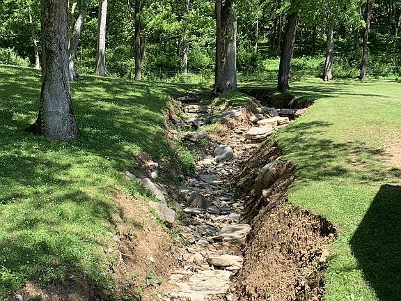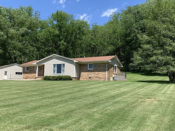 Welcome to your private retreat on 2.08 beautifully maintained acres! This charming 3-bedroom, 2-bath brick home offers peace, privacy, and picturesque views in every direction. Meticulously cared for, the home features spacious rooms filled with natural light, a manicured lawn shaded by mature trees, and a paved driveway leading to a 2-car garage. Enjoy outdoor living on the large patio overlooking the serene landscape and a wet-weather creek. Inside, the home boasts stainless steel appliances (all conveying), high-speed internet, and thoughtful updates throughout as some being HVAC, water heater recently replaced. Additional highlights include a separate storage building, No HOA restrictions and fees. Room for all to entertain, roam or relax. A perfect blend of country living with modern conveniences—don’t miss this rare opportunity!