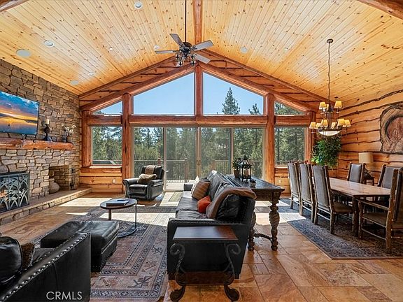 Grand rock fireplaceSurround soundPanoramic forest viewsWine fridgeHigh ceilingsSecurity systemNatural-edge granite countertops