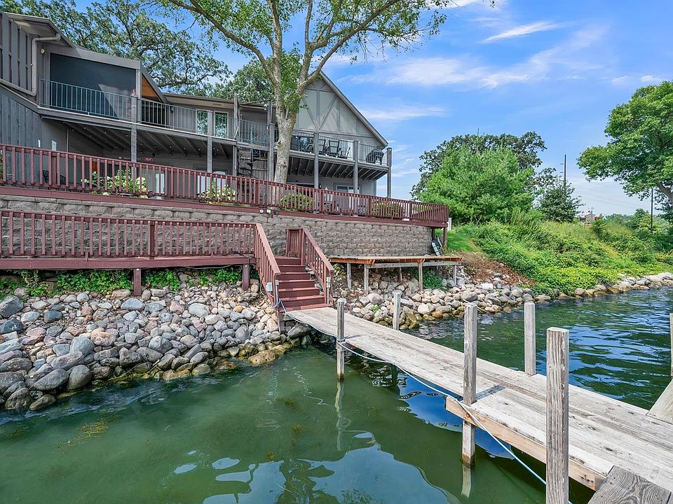 Beautiful walkout deckExpansive lake-facing windowsLakefront master suite