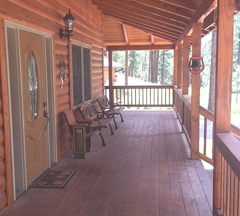 Beautiful log sided home with easy year-round access and conveniently located to all Ruidoso has to offer. Master bedroom is on the main level. The master bath has a walk in closet, jetted tub and separate shower. Upstairs is a loft, two additional very nice sized bedrooms and a full bath. The home features an open concept living room, kitchen and dining with ceramic tile flooring, a wonderful river rock fireplace and a two car garage. There is a large wrap-around deck that is great for entertaining or simply sitting and enjoying the mountain air. The lot runs street to street from Hull Road to Snowcap Drive.