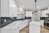 Stone fireplaceFenced-in backyardStainless steel appliancesSeparate dining roomBreakfast areaWalk-in closetWhite shaker cabinets