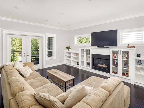 JAY CRESCENT STUNNER! Backing onto greenspace, this home boasts 4 upstairs ensuite bedrooms, including an enormous master suite with beautiful views. Spoil your guests with a stunning gourmet kitchen opening to an amazing great room featuring a gas fireplace and quality built-in cabinets. Entertain in the formal dining room, conveniently connected to the kitchen via a butler's pantry. Enjoy year-round BBQs on the covered deck with stamped concrete and a cozy gas fireplace. Relax in the study or head downstairs to the games room with a wet bar or the media room. Outside, find a flat, sunny, fenced, and irrigated yard. Bonus: a spacious 2-bed suite!