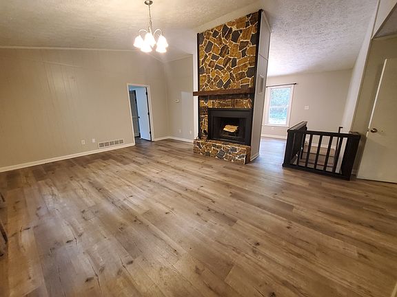 Recently renovated throughout the interior of the home, located in the Woodstock School District and minutes from Downtown Woodstock, shopping, dining and groceries. This 3 bedroom, 2 bathroom home has a split bedroom plan w/large master suite and bath. Vaulted great room w/stone fireplace. The home features a BONUS room in the basement! The 15 x 30 room on the terrace level can be a 4th BR (has windows and a closet) or multi-purpose room. Make this your home and enjoy the sunny kitchen, spacious bedrooms, updated bathrooms, and luxury vinyl plank flooring throughout. The back deck is just steps from the kitchen overlooking the large backyard perfect for relaxing and entertaining. This home includes a programmable thermostat, washer/dryer hookups, and garage. Don't miss this FANTASTIC opportunity in a FANTASTIC location! Schedule your showing TODAY!