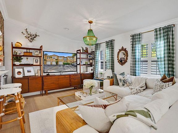 Quartz countertopsOpen concept livingPool overlooking the intracoastalBright and airySplit floor planPlantation shuttersVault ceiling