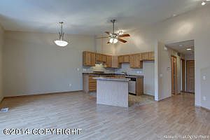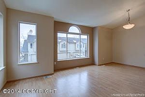 Great End unit Townhouse style Condominium in South Anchorage. Two large bedrooms & full bath upstairs. Master bedroom w/ full bath & walk-in closet downstairs. Open living /kitchen concept w/ SS viking range high ceilings, gas fireplace and large custom windows that let in the natural light. Large two car garage, private fenced back yard, new carpet , new paint and laminare flooring
