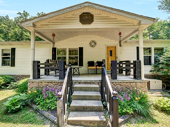 A standout feature is the outdoor furnace, which provides efficient heating and saves on utility bills. Enjoy the outdoors with two large porches, perfect for relaxing and taking in the peaceful surroundings. A beautiful creek runs through the back of the property, adding to the sense of seclusion provided by the mature trees.