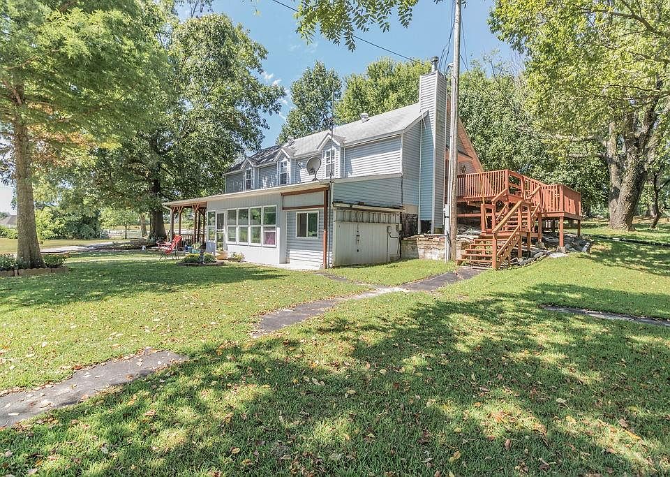 Over 3 Acres of beautiful, flat land with mature trees and even a wet weather creek. Home features 12" thick walls for added efficiency and strength. The walk out basement keeps temperatures consistent. Completely remodeled kitchen, new stainless steel appliances, quartz counters. Large deck plus a closed in porch. Property border is fenced. Would make a great hobby farm. Plenty of space for a large garden and few animals. Rain water system for the garden and landscaping. The detached garage is 28x30 and can house 2 cars or even extra tall trucks or boats. Both outbuildings have concrete floors. Even room to park an RV.