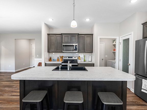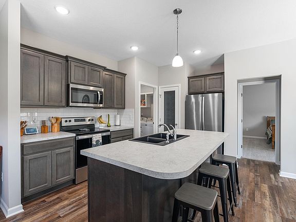 Almost New Morgan Open Floor plan with 3 bedrooms, 2 baths, 3 car garage, Lots of Windows, LVP in the Main Living area, Sod and Landscaping! Room in the basement to add Future bedrooms 4 and 5 plus 3rd bathroom and a Family Room. MUST SEE!!