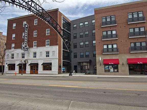 - Exterior features: 9 and 10 foot Ceilings, Assigned Parking Spaces Available, Barbecue, Community Room with Outdoor Seating and Firepit, Community Spaces, Conference Room, Exterior Type: Conventional, Floor to Ceiling Windows*, Fob Access, Granite Countertops, Julep, PetValu, Sushi, Loft Style Apartments Available, Modeled after early 1900 Warehouse, Parking, Private Patios and Balconies, Stainless Steel Appliances, Starbucks Coffee Machine, TV Lounge, Valet Dry Cleaning Available, Wright-Patt Credit Union