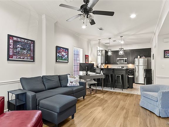 Don’t miss this incredible opportunity to own a 2-bedroom, 2 full and 2 half bath townhome just three blocks from Bryant–Denny Stadium! Designed with convenience and game day living in mind, the bottom floor features a one-car garage complete with a kitchenette and half bath — perfect for tailgating or entertaining. The main level offers a stylish kitchen with granite countertops, stainless steel appliances, and LVP flooring, along with bar seating, spacious living room, laundry room, and an additional half bath. Upstairs, both bedrooms feature private bathrooms with granite counters and tiled showers. The rooftop deck provides stunning stadium views — ideal for enjoying Tuscaloosa’s best weekends. Exceptional location, modern finishes, and unbeatable proximity to campus! Call today!