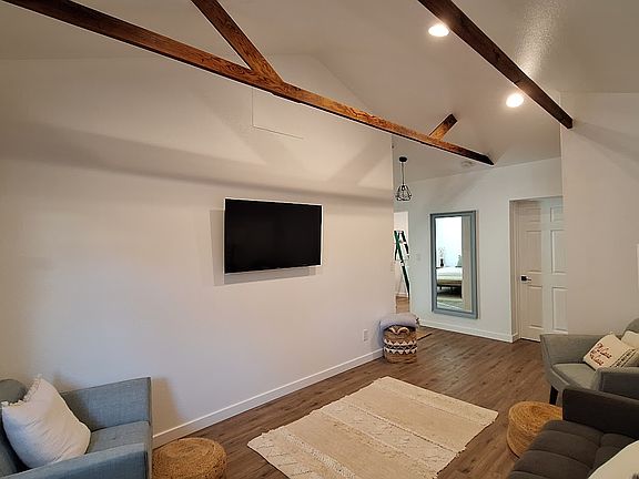 Enjoy a cozy living room with mounted smart TV included, cute kitchen, and a bedroom with plenty of natural light and clothing closet. This back unit is NEW NEW NEW, very clean with nice finishes. Can be available furnished as seen in photos or empty. For your convenience there is a new stackable washer and dryer within the unit. All utilities are covered, EXCEPT PGE. Designated parking space in the driveway, 25' from the front door. There is small side yard that can be used as outdoor space for lounging or storage. Tours to be hosted beginning December.