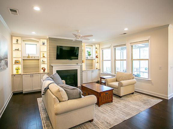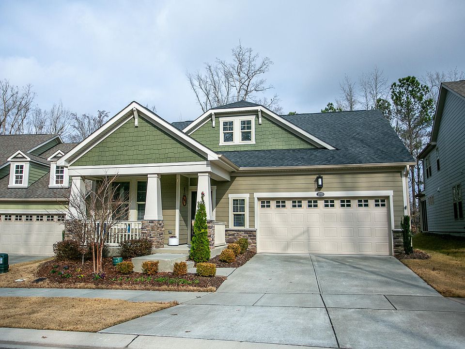 Open House Saturday 1-5pm & Sunday 1-5pm. This 3 Bedroom 2 Bath immaculate & well-maintained home is located at the end of a cul-de-sac with wooded views from both the front and back porches. Wake up with a cup of coffee on the south facing front porch as the sun peaks through the woods. Enjoy stylish upgrades including a shiplap accented dining room wall and built in living room cabinetry that melds calm and comfortable with form and function. The insulated 2-car garage keeps the cold from creeping in, as well as providing easy access to your vehicle during all seasons. The garage also features additional outlets for hobbies and maximum functionality. The thoughtful hard-wired in-home speaker system provides music throughout the home, including the garage & screened porch, feel the rhythm through your home! The kitchen is primed for cooking and entertaining or for a quiet night at home. The large island provides counter seating and easy access for the chef to put it all together with an electric oven and a 5-burner gas cooktop close at hand. Taking a moment to relax and unwind, the screened porch awaits with its view of the woods providing scenery and privacy. The screened porch opens to a patio with more than enough room for a grill, table & chairs. The main bedroom features tray ceilings and windows aplenty for letting the outside in. The featured washroom with shower leads into a walk-in closet with access to the laundry room just a door away. Welcome to living at Creekside at Bethpage, a premium 55+ neighborhood nestled between Raleigh & Durham and only 10 minutes to RDU airport, everything you want is within reach. Amenities include clubhouse, fitness center, resort-style pool, game rooms, event space, tennis & pickleball courts, dog park, walking trails, and BBQ areas.