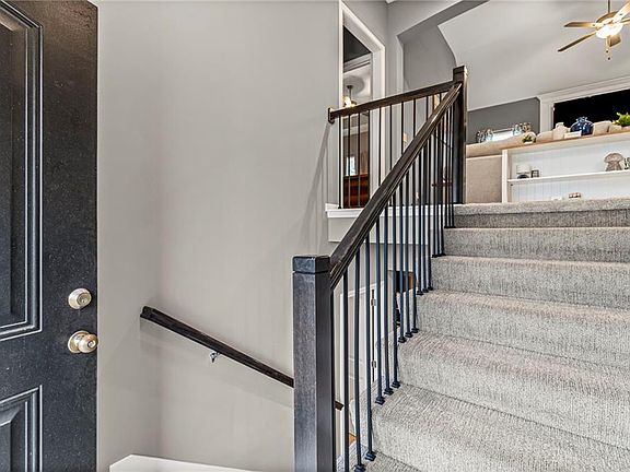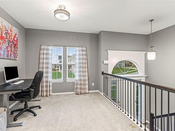 Step inside this nearly new Liberty home where thoughtful design and everyday comfort come together. The main level greets you with a spacious, light-filled living room anchored by a cozy gas fireplace and plush carpet that invites you to kick off your shoes and stay awhile. Just beyond, warm hardwood floors carry through the kitchen and dining area—an open, seamless space perfect for gatherings. The kitchen shines with quartz countertops, stainless steel appliances, ample cabinetry, and a pantry, while the conveniently located laundry room just off the kitchen keeps everything practical and within reach.