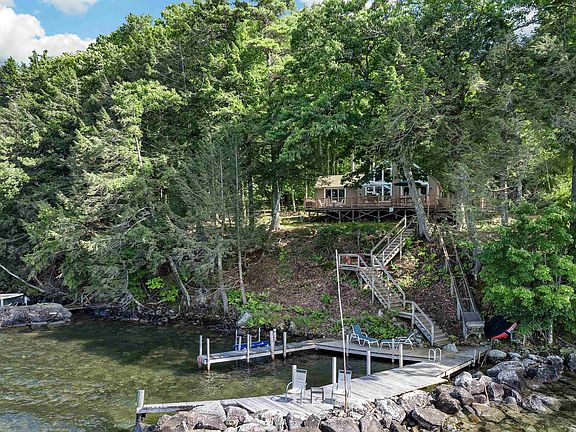 The long range 180 degree lake and mountain views are MESMERIZING from this Post and Beam Home located on Rattlesnake Island, Lake Winnipesaukee. These are some of the best views the lake has to offer. Lakeside at the property you will find crystal clear water, a sandy bottom for swimming, spectacular sunsets, and a u-shape dock with breakwater, offering plenty of space for up to three plus boats. The entire length of the house has an oversized multi-tiered deck that is perfect for grilling, outdoor dining or just relaxing. Inside you will find plentiful natural sunlight and large floor to ceiling windows offering views from every angle of the open concept great room. Two large bedrooms and a spacious sleeping loft, provide that extra room for friends and family. The home has a three-quarter bath, as well as a large outdoor shower. A stroll out back will take you to oversized shed/workshop which could easily be renovated into a bunkhouse. This property also abuts the interior access road which makes it easy for any future renovations of the home. The road is a direct link to the trail system on the island that leads up to the very top, where you can see the entire lake and mountain ranges. The Rattlesnake Association also has the benefit of a mainland property providing 4 parking spots to each member, as well as a boat ramp and docks for loading and unloading. This property has all you need to start enjoying lake and island living.