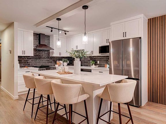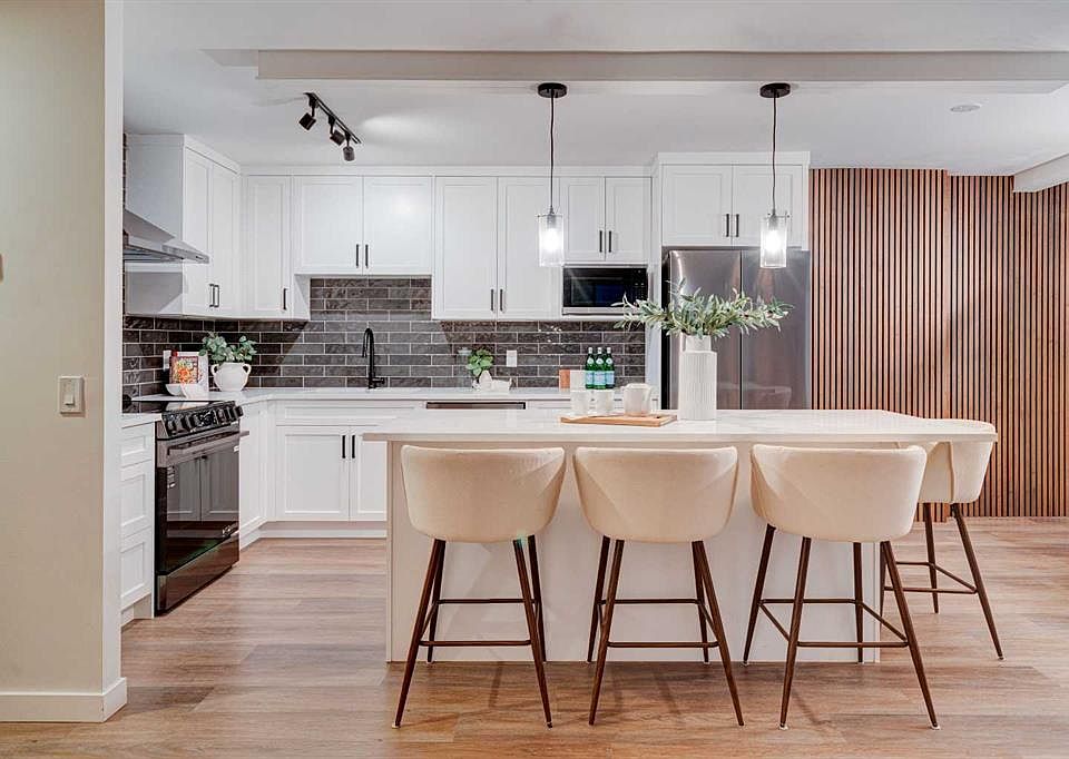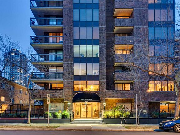 Welcome to Bristol Manor, an executive concrete building offering only 4 units per floor, ensuring a sense of exclusivity and privacy, located in the heart of Calgary's vibrant Beltline! This bright and spacious, fully renovated 2 bed, 2 bath condo offers 1123 sq ft of space and is located on the 10th floor with a wrap-around balcony providing stunning views of Calgary's downtown skyline. Upon entering you will notice a large front entry closet complete with custom wooden doors, and warm luxury vinyl plank floors that span the entire unit. Head down the hallway to the open concept main living area that is perfect for entertaining with the kitchen, dining, and living room flowing seamlessly together. The beautifully updated kitchen is tastefully done with full-height timeless white cabinets, matte black hardware, quartz countertops that include a large island with built-in wine rack, brand new black S/S appliance package, and a full pantry. Enjoy evening dinners or morning coffee while taking in the views through the floor-to-ceiling windows in the large dining room that comfortably seats 8, featuring an accent wall and chandelier. Relax in the cozy living room that is complete with an updated fireplace with an electric insert, or enjoy the scenery from your wrap-around balcony. Head to the expansive primary retreat, perfect for a king set, with a generous closet with custom wood doors and built-in shelving. The luxurious 3-piece ensuite boasts a walk-in tile shower, tiled floors, and a stylish floating vanity with ambient under-cabinet lighting and quartz countertops. Finishing out this stunning unit is a large second bedroom that can double as a home office, an updated 4-piece main bath, and a dream laundry room that includes a brand new washer and dryer, cabinet storage, and a quartz countertop making laundry a breeze! Other notable upgrades include fresh paint throughout, flat-painted ceilings, baseboards, and lighting. Bristol Manor has a rooftop patio with panoramic downtown views, an exercise room, sauna, games/social room, secure heated underground parking, and main-level bike storage. Experience the best of city living with high owner occupancy, an unbeatable walkability score, and just steps away from trendy shops and restaurants on 17th Ave. This condo truly offers the ultimate urban lifestyle! Book your showing today before it is gone!
