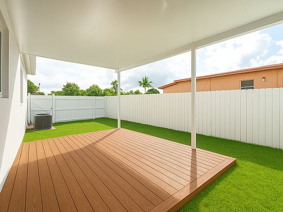 One of the standout features of this home is the spacious backyard, which offers a private oasis for relaxing or entertaining. It includes a brand-new covered wooden deck and astro turf lawn, all enclosed by a pristine white fence.