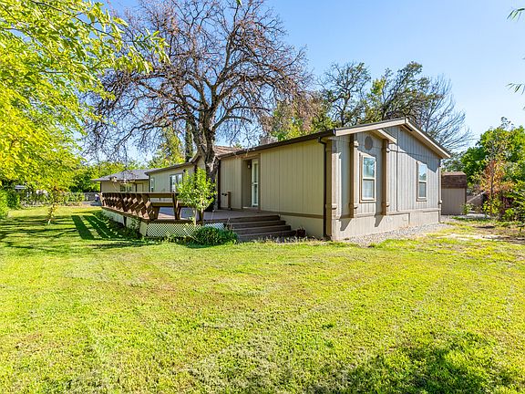 Welcome to this charming home, perfectly situated on a quiet cul-de-sac, offering privacy and convenience! As you approach the front door, you're greeted by a spacious (approx. 700 sf) redwood deck perfect for relaxing and entertaining guests. The open floor plan has a seamless flow between living, dining and kitchen areas. Island kitchen features plenty of cabinetry and counter space, pantry, and skylights that flood the space with natural light. Split floor plan with primary bedroom on one side, additional bedrooms on the opposite for added privacy. Generously sized laundry with plenty of storage and work space. Includes a wheelchair lift for those with mobility needs. Outdoor shed and full RV hookup.