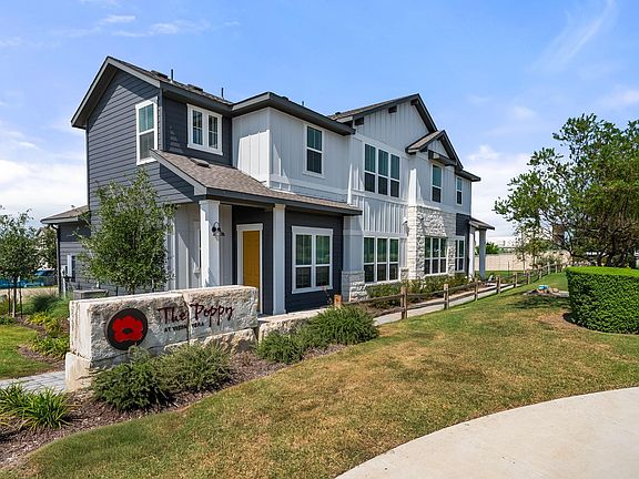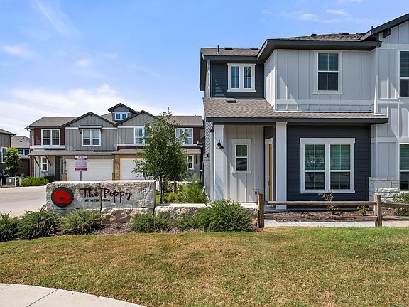 Discover comfort and convenience in this brand new townhome style condo nestled in the boutique community of The Poppy At Vista Vera Condos. Designed for effortless living, this residence offers a true lock and leave lifestyle with a beautifully landscaped yard fully maintained by the HOA. Inside, you’ll find three spacious bedrooms, two and a half baths, and a modern kitchen with granite countertops, stainless steel appliances, and an eat in island, perfect for casual dining and entertaining. Thoughtful design continues with built-ins as you enter the home, a convenient under stair storage area, and painted walls in the garage for a finished touch. The main level features an open layout and a powder bath, while upstairs hosts the serene primary en suite with dual sinks, a laundry room, two linen closets, and two secondary bedrooms, each with walk in closets for added storage and functionality. Step outside your front door to enjoy community amenities including a park, playground, and sparkling pool, all while being just minutes from shopping, dining, and entertainment. This home blends modern convenience with low maintenance living, ideal for those seeking both style and simplicity.