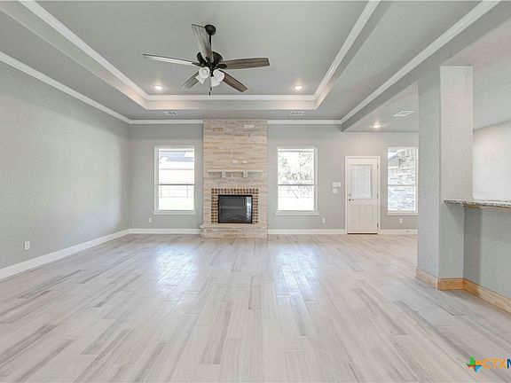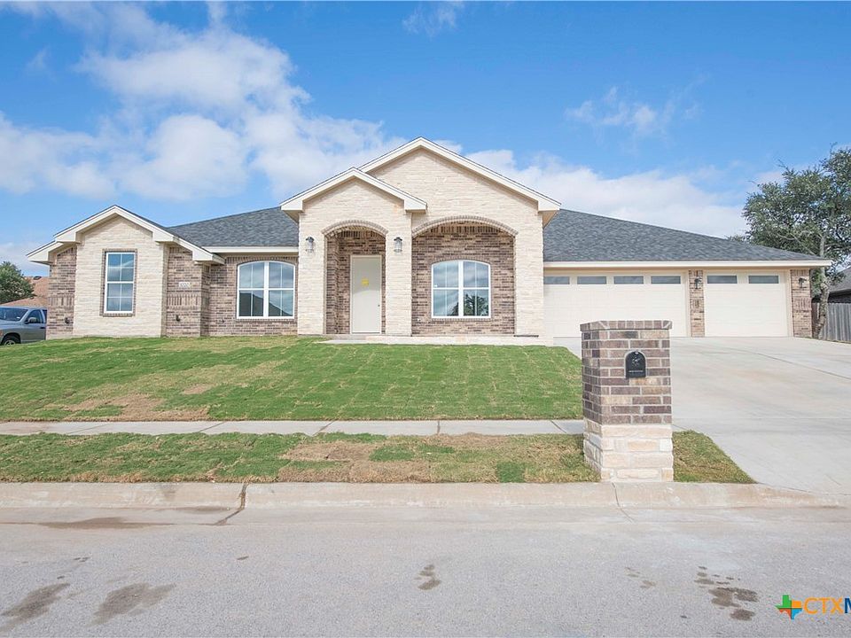 Manning Homes has done it again! This luxurious home's exterior features a beautiful mix of stone and brick. The interior features gorgeous ceramic tile floors throughout the home, with plush carpet in the bedrooms. Modern two-tone interior paint, Santa Fe style interior doors, crown molding and 5" baseboards in select areas. This home boasts stainless steel appliances, elegant granite counter-tops and gorgeous custom white custom cabinets. Enjoy the electric fireplace on cold winter days and the beautifully landscaped outdoor space during the rest of the year. Welcome to your dream home!