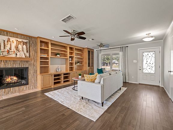 A TWO STORY INSULATED WORKSHOP offers endless possibilities, fully equipped with heating, air conditioning, and electricity — ideal for a STUDIO, GYM, OR HOBBY SPACE. Inside the house, the gourmet kitchen impresses with granite countertops, rich maple cabinetry, and premium stainless-steel appliances. Two living areas gives you so much versatility while entertaining. Two bedrooms are being used as craft room & dedicated office. The open-concept living area features engineered wood flooring (2022), custom built-in maple curio cabinets, and a cozy gas fireplace with remote. Fresh interior paint, upgraded & unique lighting fixtures throughout, and 5 year old roof. All of this reflects the meticulous care and attention to detail that this home has received. Additional highlights include two tankless gas water heaters (serviced annually), gas heat with dual AC units (serviced twice a year), a full sprinkler system, and recent updates to pool equipment (2022 pumps and DE filter). The fiberglass pool surface was resurfaced approximately six years ago, ensuring a pristine, low-maintenance outdoor retreat. This exceptional property combines luxury living with functional design, truly a rare find. Please see the full list of upgrades & features in MLS.