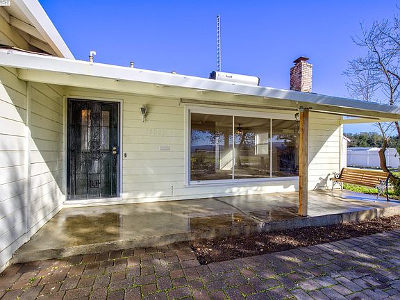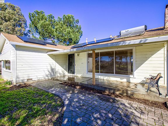 A fantastic opportunity, this prime Gilroy location boasts a truly stunning home. As you walk in the front door into the hallway, the living room welcomes you on the right, leading into the dining area, then into the eat-in kitchen with a back door to the spacious backyard and detached garage. The kitchen has a fridge, freestanding stove, washer, dryer, and garden window looking into the backyard. The living room, filled with natural light, greets you with a fireplace to keep you cozy in the winter and ample space for entertaining; The main bedroom has glass doors leading into the backyard and an en-suite bathroom. There is a pass-through office/den. Two bedrooms are off the back hallway with a backdoor to the spacious backyard. The carpets throughout the home have just been replaced, and the interior of the home has just been repainted, ready for you to move in. The home has Solar panels on the roof.