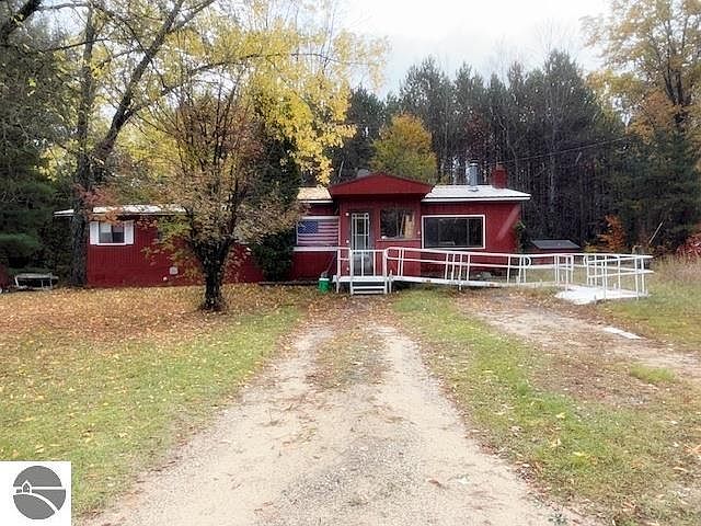If you are looking for an affordable home or Up North getaway this may be your place. Older mobile with additions situated on 5 acres AND pole barn as well as additional storage buildings. Home has 2 bedrooms, large living room, wood stove, metal roof, and huge pantry. The 5 acre parcel is nicely wooded.
