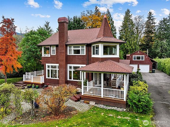 Welcome to your new gorgeous home in the coveted Circle River ranch addition! Stunning view of beautiful Mt. Si The ADU behind as well as a horse barn and 2 car garage with 2 space carport. Home sits on 1.22 acres. Inside home you'll see beautiful hardwoods, flowing front room to kitchen and dining area. Upstairs are 3 bedrooms, 2 have decks for hanging out on. Primary bedroom has full bath, walk in closet, stellar vision and a covered veranda outside the french-doors. Owners love to have coffee there year round. The ADU has full bath, bedroom, kitchen & new flooring. Plenty of space for friends or for use as a rental unit. This home has much to offer in addition to being quiet on a no outlet road. Come see for yourself. Thanks!
