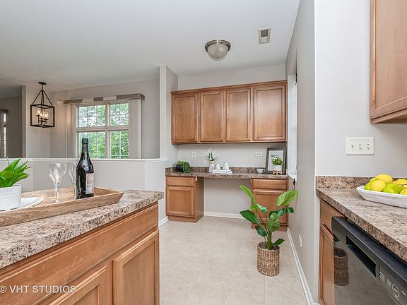 Discover the pinnacle of luxury living in this exquisite 2-bedroom, 2-bathroom condo, perfectly nestled against a serene native nature preserve. This beautifully maintained home boasts an open concept design that invites you to indulge in spacious elegance, complemented by soaring 9-foot ceilings. The gourmet eat-in kitchen is a culinary dream, featuring 42" maple cabinets, a convenient built-in desk, a versatile island, and abundant cabinet space. The expansive living room, bathed in natural light, seamlessly extends to a private patio through sliding doors, offering a perfect blend of indoor and outdoor living. Retreat to the master bedroom, a haven of tranquility with dual closets and an opulent full bath complete with dual sinks. The generously sized second bedroom and additional full bath ensure comfort and convenience for all. Enjoy the ease of in-unit laundry with a full-size front load washer and dryer. An attached 1.5-car garage with a separate storage room provides ample space for all your needs. Located in a prime spot, this condo is close to the subdivision's park, Pete's Fresh Market, premier shopping, delightful restaurants, and offers easy access to I-294. Whether you're looking for a permanent residence or a rental investment, with a minimum 12-month lease and a 2-pet limit, this unit caters to all your desires. Don't miss the opportunity to experience this exceptional property firsthand - come see the perfect blend of luxury and nature today!