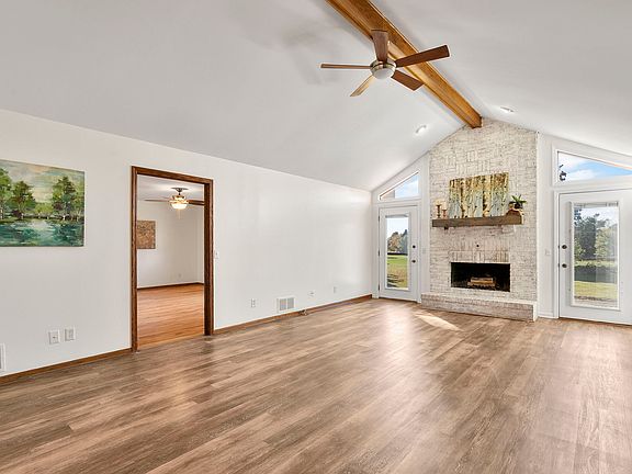 Stunning brick fireplaceFully finished basementCorner ranchFirst-floor laundryOver an acreThoughtful accessibilityHandicap-accessible shower