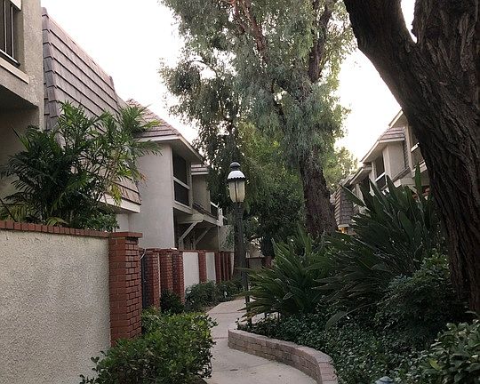Great Split-Level Townhome in Chatsworth, corner unit with only 1 common wall, 3 bedrooms +2.5 bathrooms, laminate floors throughout, engineer wood on stairs, open floor plan with a large living room with recessed lighting, fireplace and private patio for your gatherings. Just a half level up is the dining room that leads into a large kitchen ready for your personal touch. tons of storage, with large windows and plenty of natural light. The top floor provides two bedrooms with a shared bath, the spacious master suite with a beautiful en-suite bathroom, walk-in closet, and small patio for relaxation after a hard day of work. This wonderful unit has in unit laundry, remodeled bathrooms, newer triple pane windows & slider door and direct access two-car garage. Complex offers resort-style living with 2 pools, 2 spas, community room with kitchen, and lots of on-site guest parking. HOA includes cable, trash, water, earthquake insurance, and maintenance. Water softener in unit