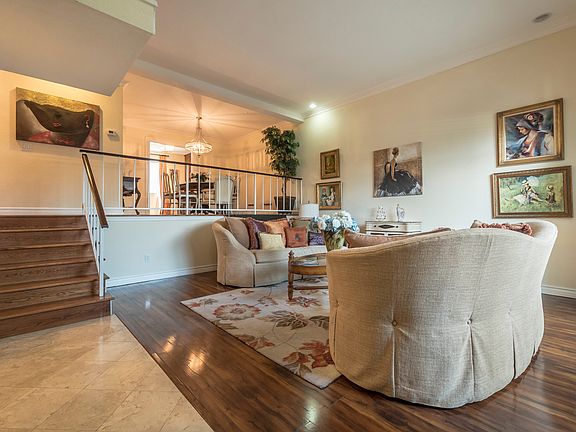 OPEN HOUSE CANCELLED Fabulous tri-level end unit located in the highly sought after Mason Grove Community, This town home spans approximately 1,623 square feet, offers 3 bedrooms and 2 ½ bath, it is in move in ready condition, interior highlights include: walking into a spacious formal living room, leading to the spacious front patio in the same level high ceilings 9 feet+, recess lighting, beautiful with built in cabinetry near entrance, step up to the second level to the Formal Dining Room and large Kitchen with upgraded cabinetry, marble floors, ample counter and storage space throughout, breakfast nook including built in desk with more storage cabinetry and a renovated powder room. On the third level you will find a large Master Bedroom with ensuite bathroom with jetted tub, large custom built walking closet and a balcony, two additional bedrooms in the same level both with custom closets, additional bath with shower, linen closet, laundry room with more built in storage! And many more features including: ceiling fans, attached 2 car garage with tremendous amount of storage cabinets, cedar closet in garage. Crown moldings throughout, upgraded hardware in all cabinets and doors, glass closet doors, hardwood and wood laminated floorings, 2 Community pools/spas one heated all year round, sauna, clubhouse, pool tables and so much more, conveniently located near shopping, dining and entertainment. Must see for yourself. Advertised by Miriam Greenberg Realtor unrepresented buyers dial 213-500-0013 for viewing appointment.