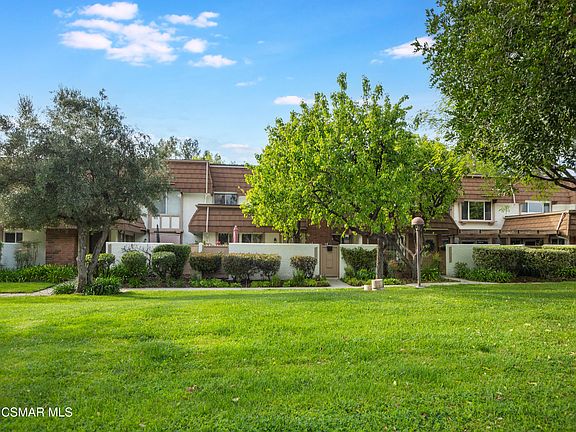 Great opportunity to own a home near nature near the base of the Santa Susana Pass with park area and trails. Over 2000 sq ft of comfortable living space with 4 beds and 3 baths. Features include wood like flooring, plantation shutters, a fireplace, bonus room, vaulted ceiling, a wet bar, convenient 2 car attached garage, walk in closet, central A/C and 2 private fenced patios. The kitchen offers granite counters and stainless steel appliances. The community offers several pools, outdoor kitchen areas, rec rooms, and playground with on site management. HOA includes walls out coverage, Fire and Earthquake Insurance!