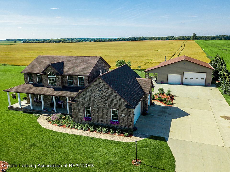 Beautiful custom built 5 bed/ 4 bath brick home with 3 car garage and 36x40 outbuilding on 2 acres in the Fowler School District. A large two story foyer will welcome your guests off the wrap around porch and into this lovely home. Right off they will notice the brick fireplace that warms the living room with an open staircase to the 2nd floor. Also on the first floor is the master suite, kitchen, laundry room, 1/2 bath and dining room. On the 2nd floor you will find 1 full bath and 4 bedrooms,two which are currently used as offices. The lower level is currently used as a workout area and guest suite with a full bath and ample storage spaces. Patio doors from the dining room lead you to the stone back porch and patio area with an impressive outdoor grill.