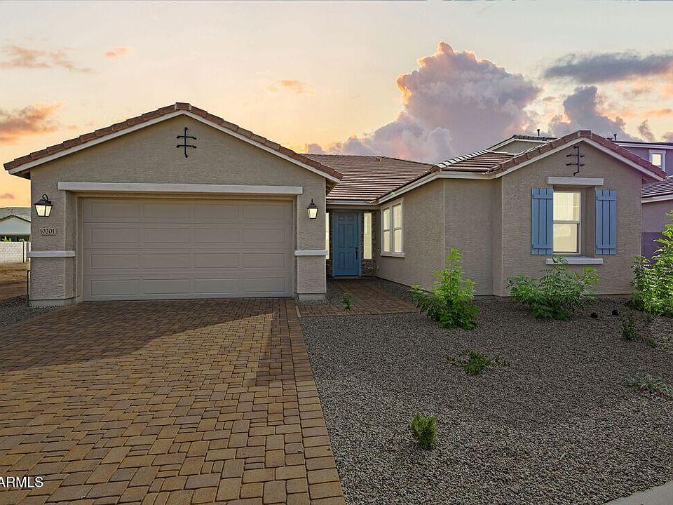 New Construction - Ready Now! Built by America's Most Trusted Homebuilder. Welcome to the 45-RM2 at 10201 W Weldon Ave in Parkside Almeria. This spacious single-story floor plan begins with a welcoming foyer that leads past two secondary bedrooms and a full bath. A versatile flex room offers space for a home office, gym, or creative studio. At the heart of the home, the open kitchen, great room, and casual dining area create a warm and connected space perfect for entertaining or everyday living. The primary suite is a relaxing retreat with a large walk-in closet, dual vanities, a soaking tub, and a separate shower.Additional Highlights include: 42'' kitchen cabinets, upgraded cabinets, gourmet kitchen, 6''x36'' tile and two tone paint. 10201 W Weldon Avenue - ready Now! MLS#6873011 Additional Highlights include: 42" kitchen cabinets, upgraded cabinets, gourmet kitchen, 6"x36" tile and two tone paint.