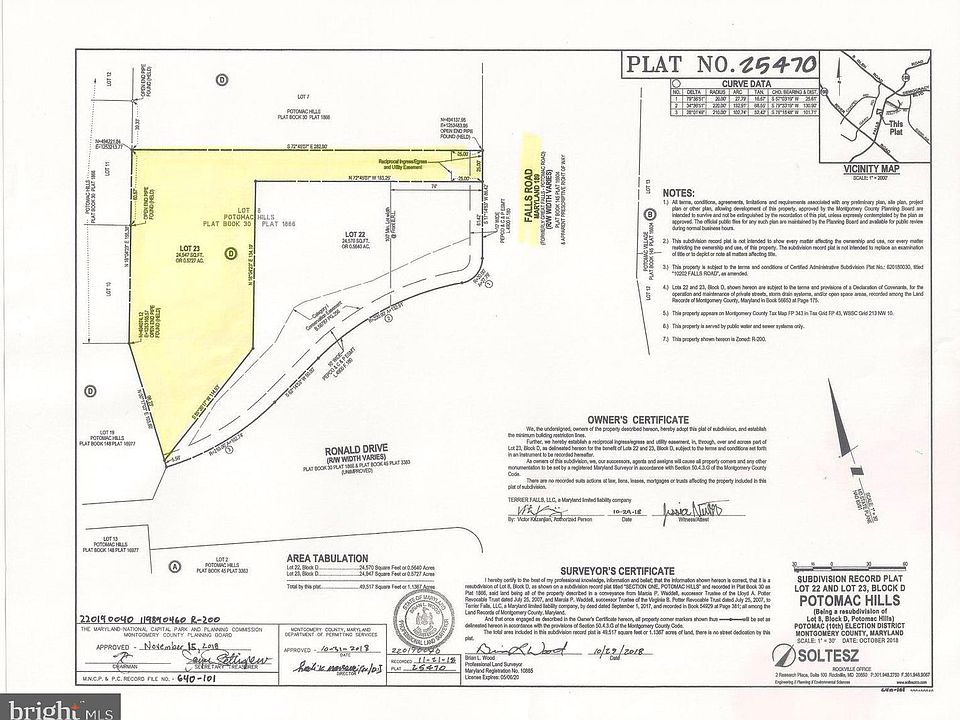 Build your dream house in Potomac Village! Fantastic opportunity -- half-acre lot at Potomac Village. Second half acre lot also available, see listing for 10200 . Superior location -- shopping, restaurants, every amenity, easy access to I-495, Rt. 270, the ICC, and public transportation nearby. Zoned R-200