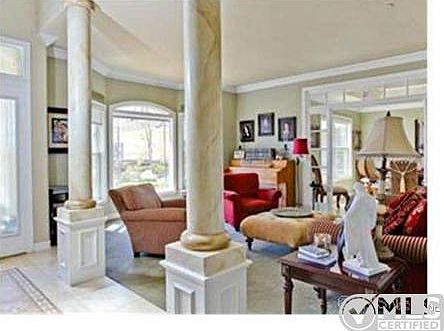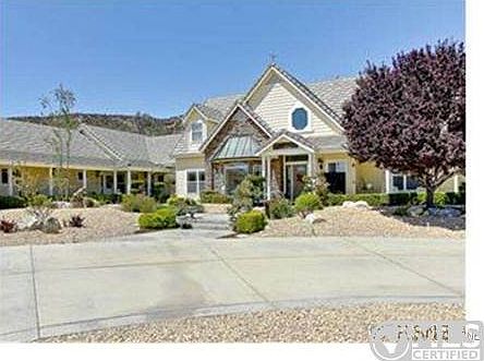 Beautiful and unique gated estate on 10 fully fenced acres with unobstructed Agua Dulce valley views. One of the many features that makes this approx. 5,666 sq. ft., 8 bedroom 7.5 bath home so special is that it's like two homes in one! There are two "wings" each boasting their own full sized kitchen, dining room, family room, bedrooms, patios, and separate entrances. Part of the home has upstairs bedrooms, and on the other side, all rooms are on the first level. Other features of this well appointed home include travertine flooring, central vac, granite kitchen counter tops and tumbled stone backsplash, ice machine, center island with wood "cutting board' top, formal and casual dining areas, laundry room, two whole house/attic fans, downstairs master bedroom with fireplace, spa tub in master bathroom crown molding, solar heated salt water pool with slide/fountain, BBQ, gazebo,firepit sports court, horse corrals, 4 stalls, riding arena, tack room, treated wood vinyl wrapped fencing, two water tanks, 3 a/c and heating units, 3 car garage, alarm system, well maintained yard and grounds. There is also an existing buildable pad area at the upper portion of the property for possible subdivision. A truly move-in ready property!