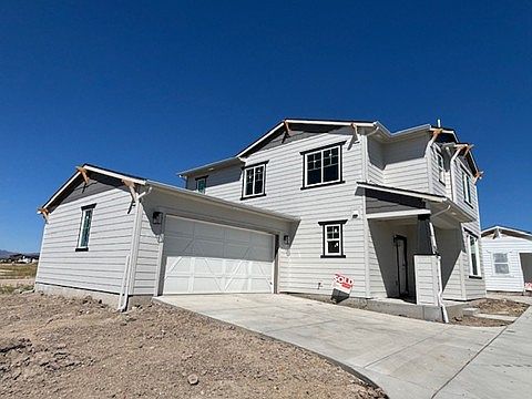 Jasmine 2-story plan in Wolf Ranch. 3 bedroom, 2.5 bath, 2 car garage home. As you step through the front entry you'll be treated to an open concept living, dining and kitchen. Adjacent to the great room, you'll find a dining area that opens up to a patio, ideal for alfresco dining and outdoor enjoyment. The kitchen boasts cabinets in a split finish with black painted uppers and maple lowers in a pecan stain, complemented by elegant Black Mist granite countertops in a leathered finish. A large island, capable of seating four, serves as a focal point for gatherings and casual meals. The kitchen also features a pantry and stainless steel appliances, including a gas range and refrigerator. Head upstairs to the primary suite, a serene haven located on one side of the upper level for maximum privacy. The primary bedroom includes a bathroom with a spacious shower, a vanity with dual sinks, and a generous walk-in closet. Separated from the master suite the two additional bedrooms provide ample space and comfort. These bedrooms share a well-appointed secondary bath. Blinds are included in the upper level beds and baths. The upper level also includes a laundry room. The home comes equipped with air conditioning, smart home package, and active radon mitigation system. Full yard landscaping and a fence provide a beautifully manicured yard and privacy.