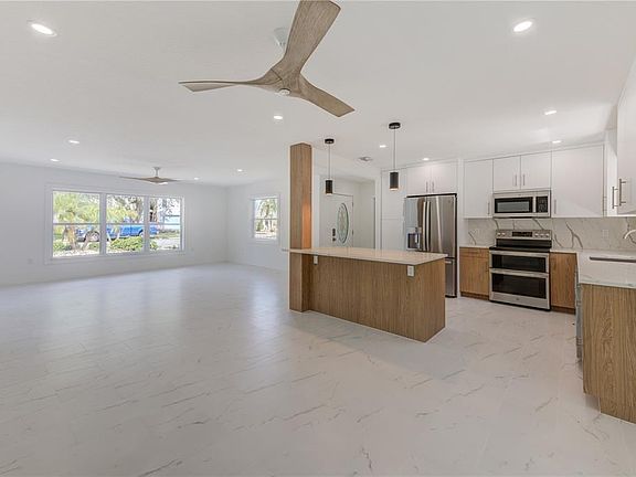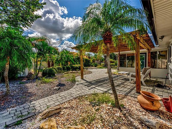 Custom appointments throughout on this decorator inspired remodel located in the highly sought after Paradise Island Beach Community. Spacious 2 bedroom 2 bath open floor plan with over 1600 sq. ft., lush landscaping with circle paver drive and a fenced tropical backyard with a spacious lanai overlooking paver pathways and a shaded sitting area for enjoyment. Inside you'll find custom cabinetry, unique fixtures, beautiful quartz counter tops, high-end GE appliances, custom outfitted closets throughout and a generous amount of 5k ceiling can lights in each room. This home will not disappoint in any way, bring your golf cart or enjoy a short bike ride to the famous Treasure Island beaches and nightlife, restaurants and entertainment venues. Paradise Island offers parkway streets for safe walking and biking and a community center with amenities. This beautifully remodeled home is available immediately and offered on a 12-month Long-term lease.