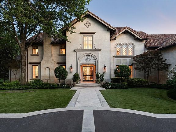 Nestled behind the gated 2 acres of private grounds is this exquisite Mediterranean masterpiece. Crafted by Cole Smith, Jr and designed by architect Larry Boerder in 2007, the timeless & quality craftsmanship within 10,382 sqft is unmatched. A grand foyer, soaring staircase, spacious formals and archways lead to a gracious family room with beams & cast iron fireplace, bar, wine cellar and open kitchen living. A secluded owner's suite and guest with private entry graces the first floor. Upstairs are three bedrooms ensuite, elegant office, screened terrace, game & exercise room. The grounds of this Old Preston Hollow beauty are captivating with lavish greenscape, outdoor kitchen, resort-style pool & sport court.