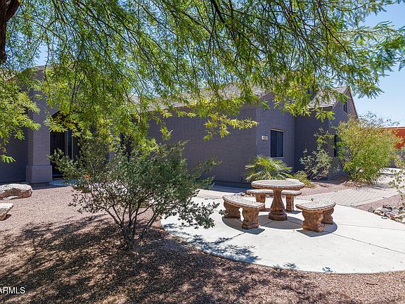 Bring your toys! This custom 3 bedroom, 2.5 bath home has room for them all. Sitting on a fully fenced 1 acre lot, this home features upgrades and luxury throughout. The primary suite features an oversized walk-in closet and bathroom with a jetted soaking tub, raindrop shower, double sinks, and upgraded cabinetry. Beautiful kitchen overlooks the expansive great room, the perfect space for all of your entertaining needs. 3 car garage with both extended length and height, built in storage, utility sink, epoxy floors, and a spot free car wash station. An attached workshop has plenty of space for all of your projects. Outside you'll find 2 large storage buildings with water and power. The rooftop deck with built in seating provides the perfect spot to take in the Arizona sunsets.