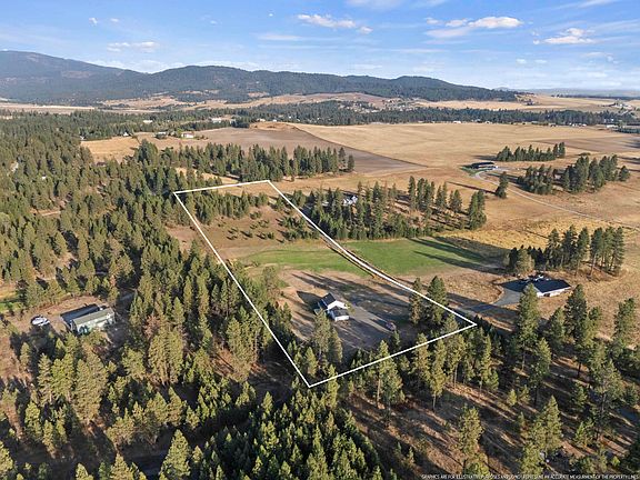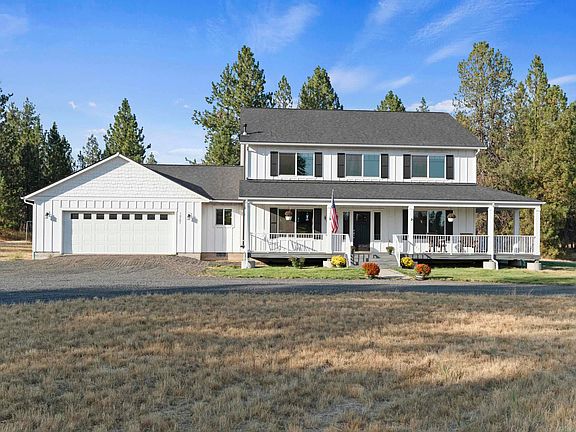 Idyllic setting just South of Spokane Valley. Stop your search! Abundant privacy and wildlife, yet close to schools and town can be found in this modern custom farmhouse on 10 sub-irrigated acres. Build your dreams and memories within these walls and make plans outside from the inviting wrap-around porch. Every room offers spacious comfort. Fabulous high-end kitchen with gas double ovens, massive center island, tons of cabinetry, and built-in microwave. 2 laundry rooms; main floor and master. 2 family rooms. Pellet stove for those wintry days. CAC for the heat of summer. Easy access shared driveway with just two other amazing homes and neighbors with protective CCRs. 400 amp service, and there is a site cleared and waiting for the shop.