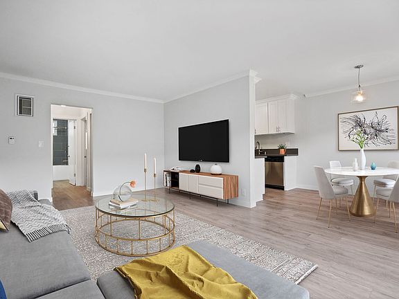 Private patioSmall complexUpdated fixturesWood-style laminate floorsWhite cabinetryQuartz countertopsStainless-steel appliances