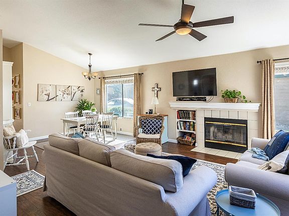 Welcome home to your sunny & newly upgraded kitchen: Corian countertops with ceramic backsplash, new sink & faucet. All new stainless steel appliances, fresh paint, and ceramic flooring. We modernized the 90's TV cave to accommodate a flat-screen TV and added built-in bookshelves. Both bathrooms also have new tile flooring and baseboards. New curtains, blinds, lighting fixtures, and toilets throughout. Ceiling lighting in bedrooms. Covered patio in the private backyard to entertain your friends and family. New water heater.