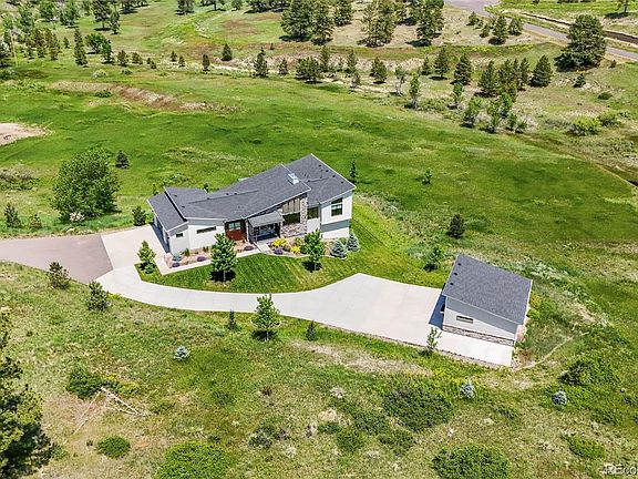 **SELLER IS OFFERING A BUY DOWN ON 7/1 ARM WITH 5.625% INTEREST RATE**This stunning custom retreat, set on over 2.5 acres. Backing to open space and a picturesque ravine with seasonal running water, this property offers tranquility and natural beauty, all in a location close to town. The heart of the home is the exquisite kitchen, featuring a spacious island, Bosch and Fisher & Paykel luxury appliances, and a walk-in pantry equipped with customized storage shelves and a built-in coffee counter. Entertain effortlessly with a formal dining room, two wine fridges, and a living room adorned with a floor-to-ceiling stone fireplace. The expansive Kolbe sliding glass doors open to a large private deck, complete with a built-in outdoor fireplace, a privacy wall, and views of the open space. Designed with modern living in mind, the home is equipped with in-ceiling speakers, electric blinds, and smart lights, all seamlessly controlled via your smartphone.The main-floor primary suite is a haven of relaxation, featuring in-ceiling speakers, a free-standing tub, a walk-in shower, dual sinks, and a walk-in closet with custom shelving by Closet Design. An additional main-floor bedroom offers versatility as a guest room or office. The fully finished basement boasts two generously sized bedrooms, a full bathroom, ample storage, and entertainment space. It also opens to a second private patio, perfect for enjoying Colorado’s beautiful weather. The basement includes space to add an additional bedroom, with a pre-cut opening in the wall ready for a door, as well as plumbing in place for an additional bathroom. The property includes an attached three-car garage and a detached, insulated garage measuring 26’x30’. The detached garage features separate 200-amp service, water access and heating, making it ideal for additional vehicles or as a workshop. Conveniently located near E-470 and Southlands Mall, this home strikes the perfect balance between privacy and accessibility.