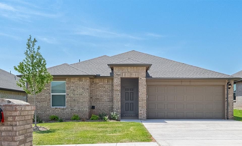 Discover the Ashburn plan, one of our new homes in Horn Valley in Yukon. With 3 bedrooms, 2 bathrooms, and 1263 square feet, this home offers space and comfort. Secondary bedrooms are thoughtfully placed near the entry, leading you into the open-concept living spaces. The kitchen showcases shaker-style cabinets, stainless steel appliances, a pantry, and a central island with sink and dishwasher. At the back, the primary suite provides privacy with an adjoining bath and a generous walk-in closet. This home includes our Home Is Connected® smart home package — featuring a camera doorbell, control panel, Kwikset® keypad lock, and smart switches. It also comes with a fully sodded yard and a front landscaping package for added curb appeal. This design blends function and style, making it perfect for families searching for new homes in Oklahoma City.